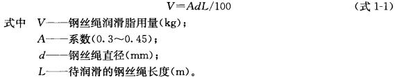 根據(jù)經(jīng)驗(yàn),鋼絲繩潤(rùn)滑脂的用量可按鋼絲繩直徑和鋼絲繩長(zhǎng)度加以估算,其計(jì)算公式如下:
